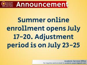 - Announcement | Summer Enrollment Schedule for AY 2023-24 | pid#8225