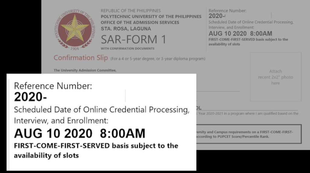 Sample copy of SAR-FORM 1 were you can find the date and time of freshmen enrollment (You can download the SAR-FORM 1 after confirmation)