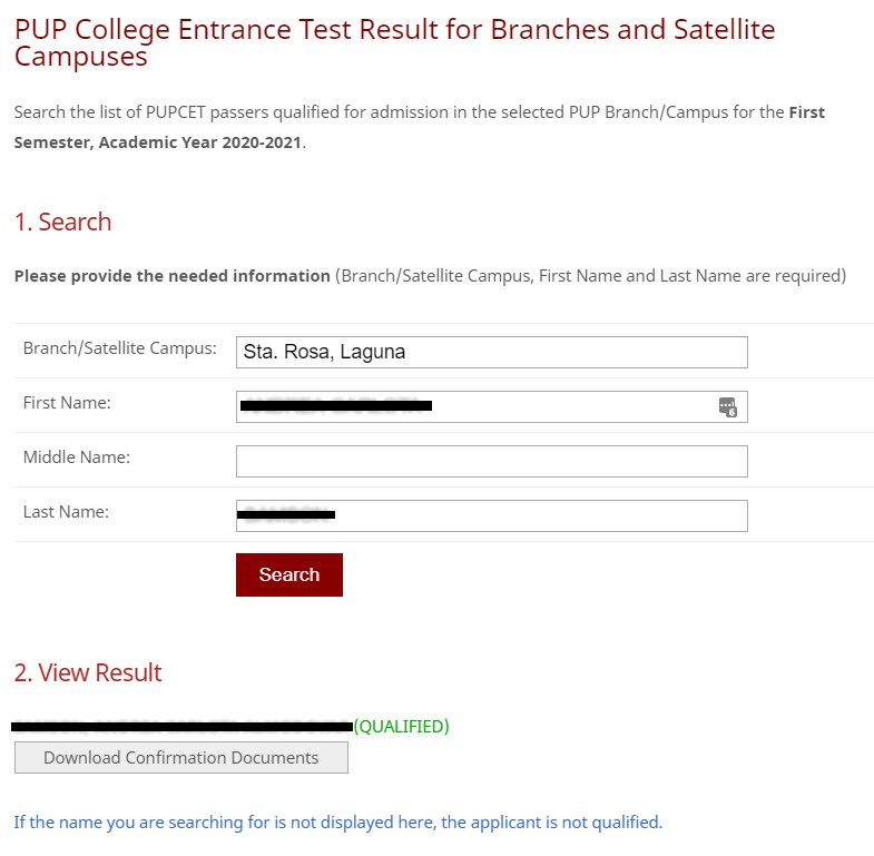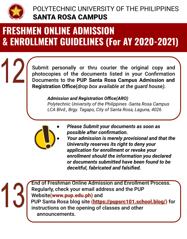 Confirmation/Enrollment page were you can download the SAR-FORM1 and Enrollment for Freshmen