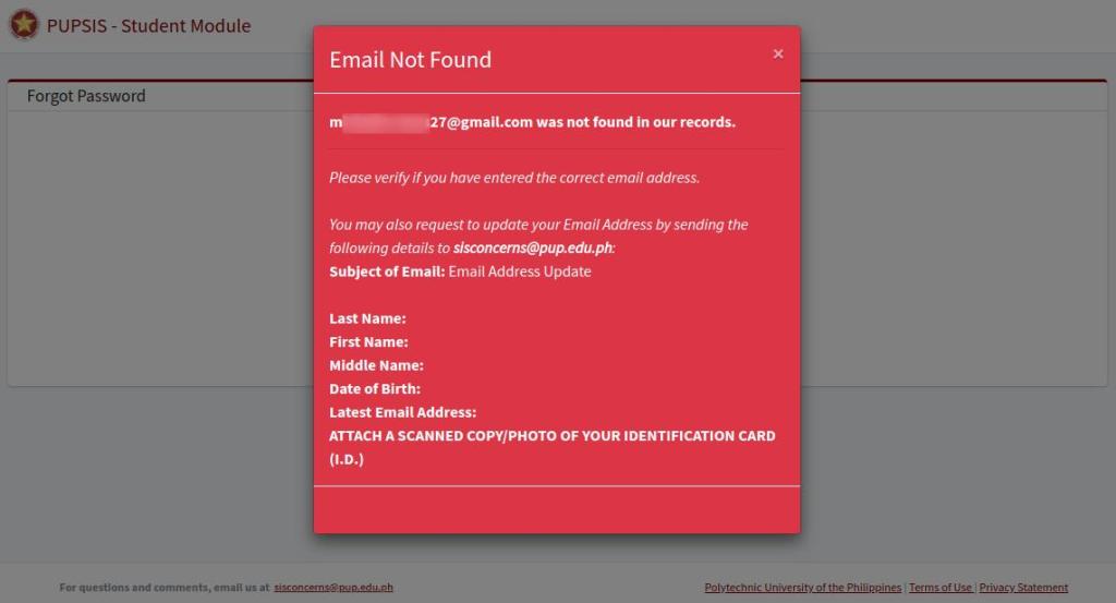 You may also request to update your Email Address by sending the following details to sisconcerns@pup.edu.ph: