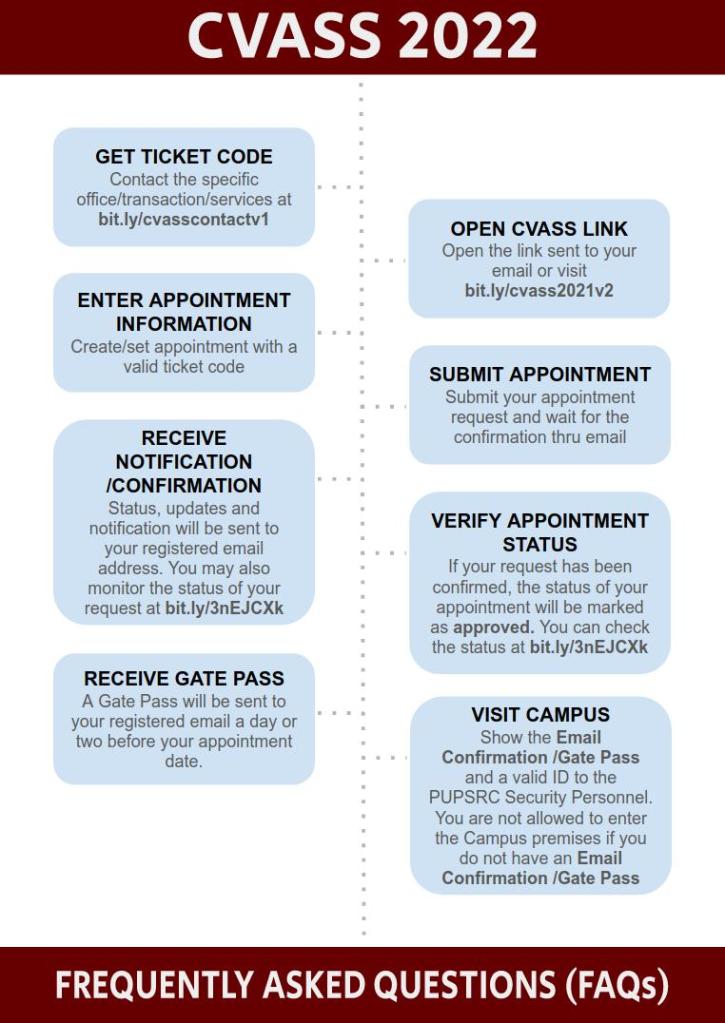 All visitors and clients of the University should have an approved appointment with a PUP Official, Personnel, or Unit and present the same to the security officers before they are permitted to enter the University premises starting March 22, 2021.