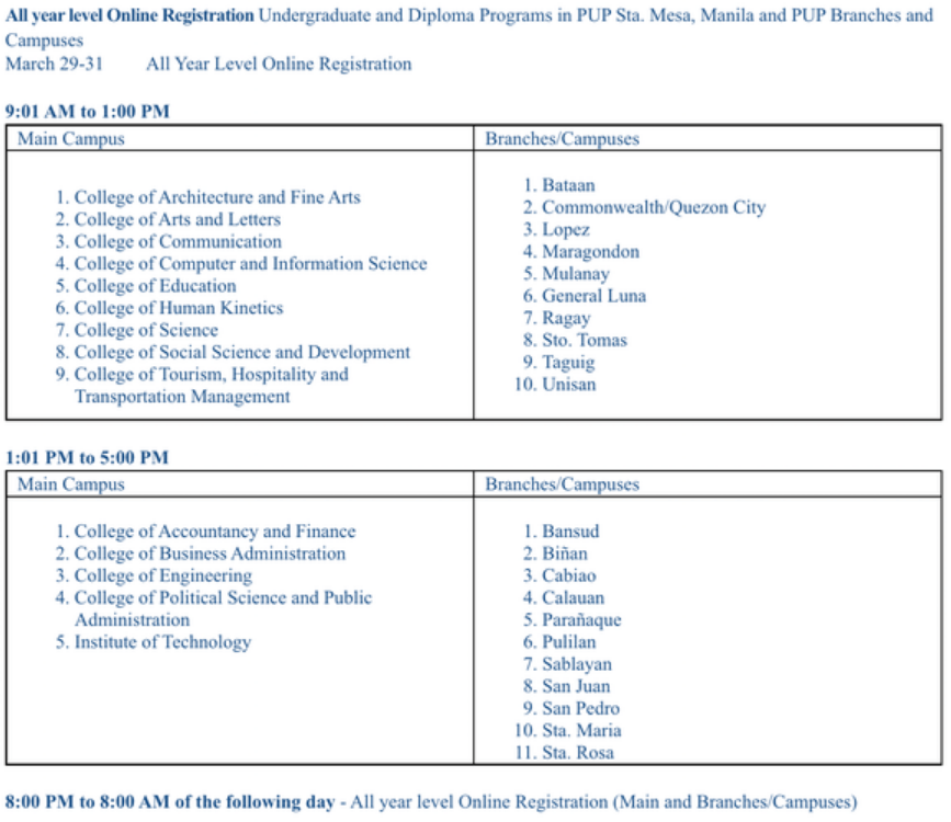 ANNOUNCEMENT FOR PUP STUDENTS: Online enrollment is extended until MARCH 31, 2022 ONLY with the following schedule.