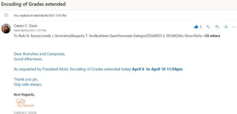 Please be advised that encoding of grades has been extended until April 10, 2022. Thank you!