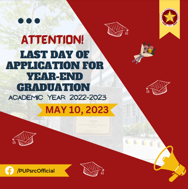 The deadline for submitting applications for Year-End Graduation Academic Year 2022-2023 is May 10, 2023. Please note that applications will not be accepted after this date.