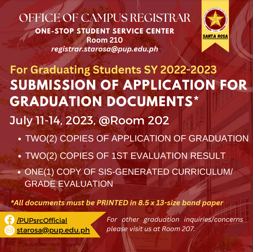 SUBMISSION OF APPLICATION FOR GRADUATION DOCUMENTS*