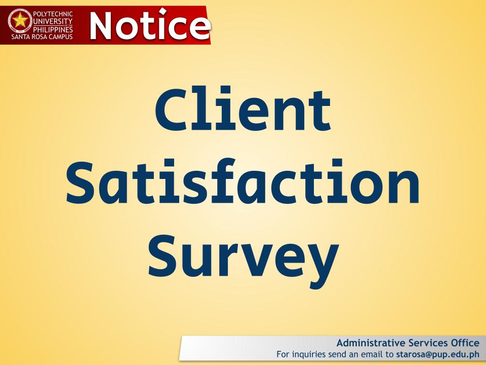 Please take a moment to complete our Client Satisfaction Survey to help us improve our services at PUP Santa Rosa Campus. Your honest feedback is invaluable in ensuring that we continue to meet and exceed your expectations.