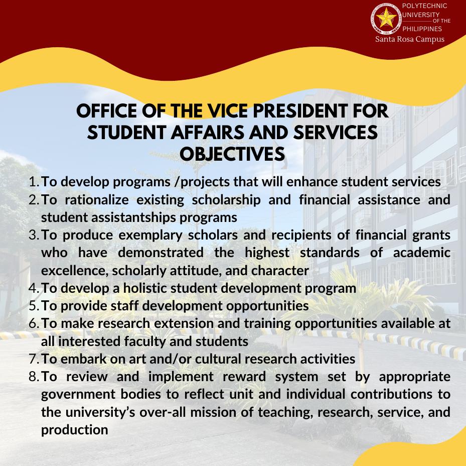 OFFICE OF THE VICE PRESIDENT FOR STUDENT AFFAIRS AND SERVICES OBJECTIVES