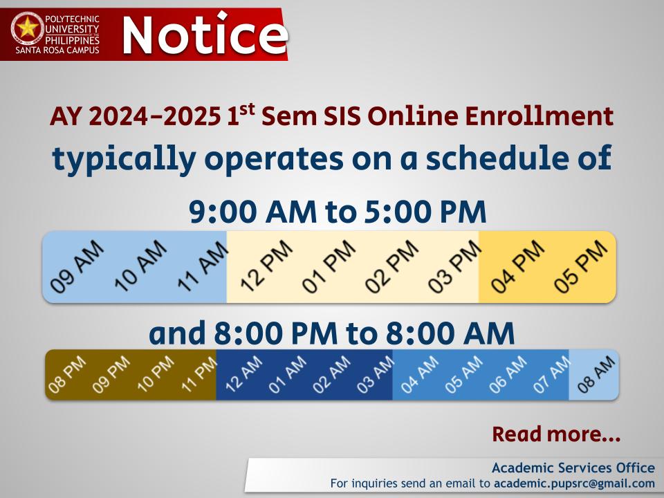 Enrollment Schedule for First Semester, A.Y. 2024-2025