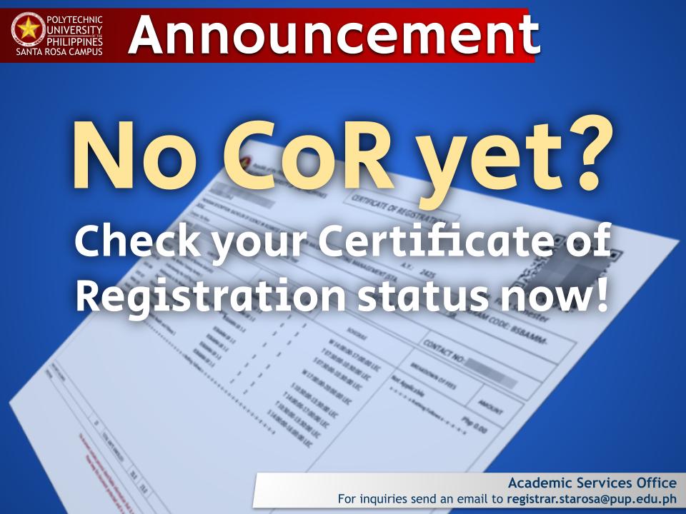 Attention Freshmen: Certificate of Registration (CoR) Update