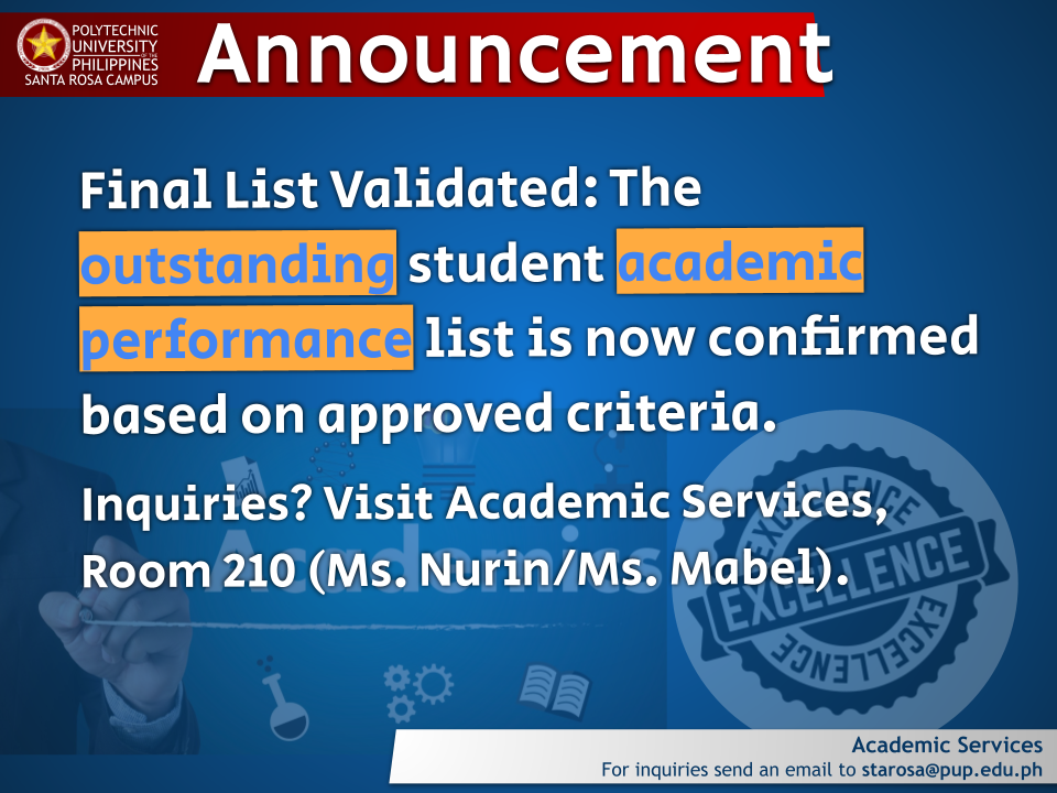 The Final List of Outstanding Student Academic Performance has been officially posted.